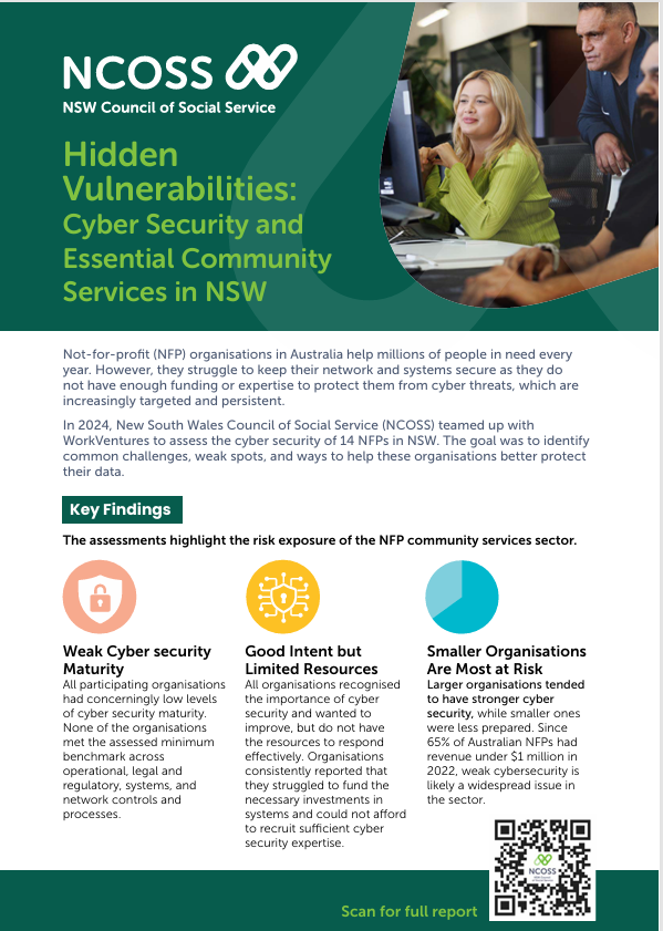 The report from WorkVentures and commissioned by NCOSS, has found this is largely due to limited resources and expertise, the sensitivity of data they hold, and the increasing sophistication and targeted nature of cyber threats.